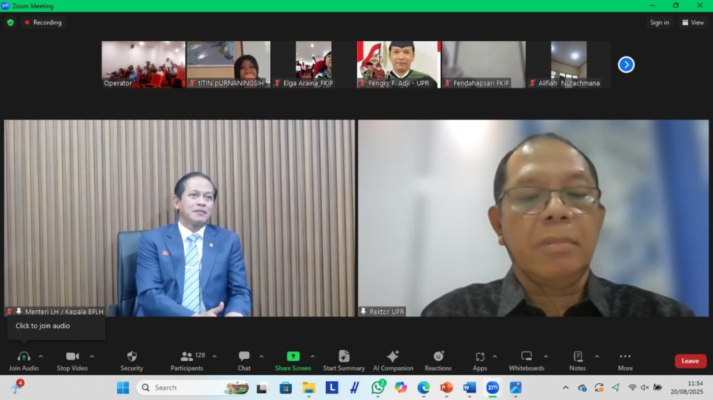 Pada kesempatan ini, turut hadir secara daring melalui Zoom Meeting, Dr. Hanif Faisol Nurofiq, S.Hut., M.P., selaku Menteri Lingkungan Hidup Republik Indonesia. Dalam sambutannya, beliau menekankan pentingnya peran perguruan tinggi dalam menjaga kelestarian biodiversitas sekaligus berkontribusi nyata terhadap pembangunan berkelanjutan di Indonesia.